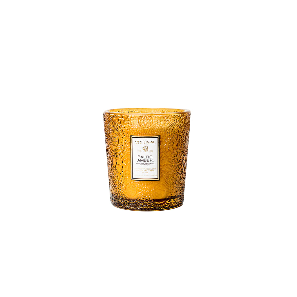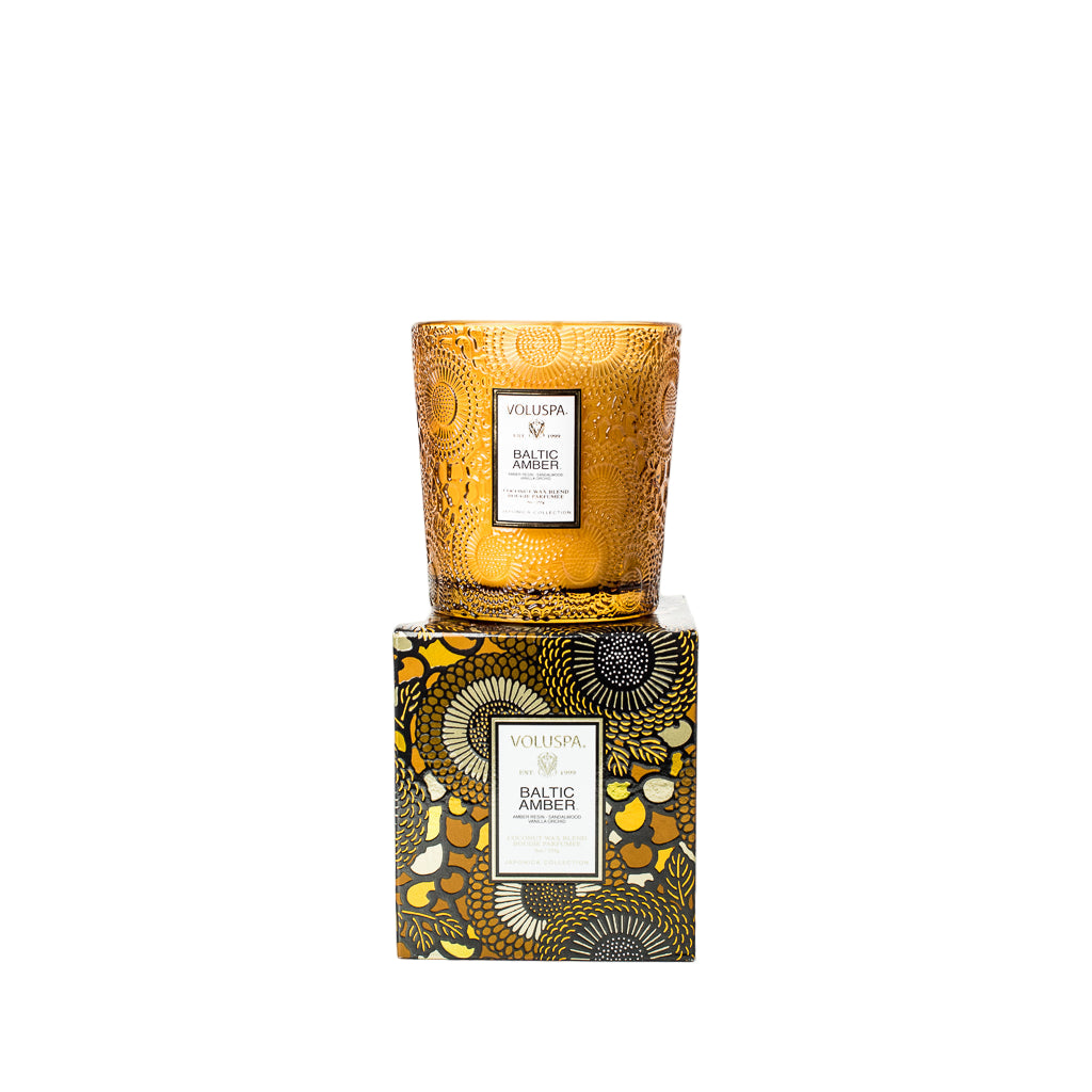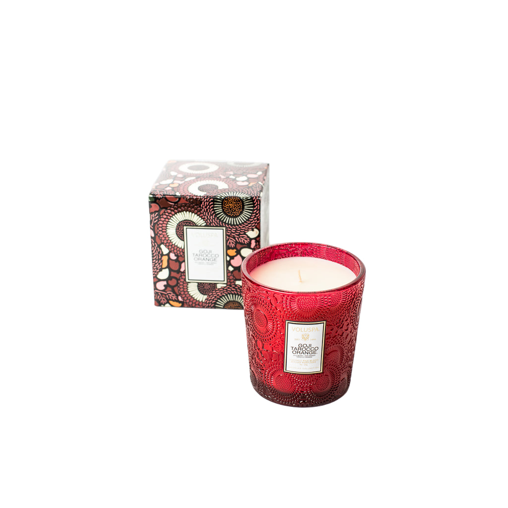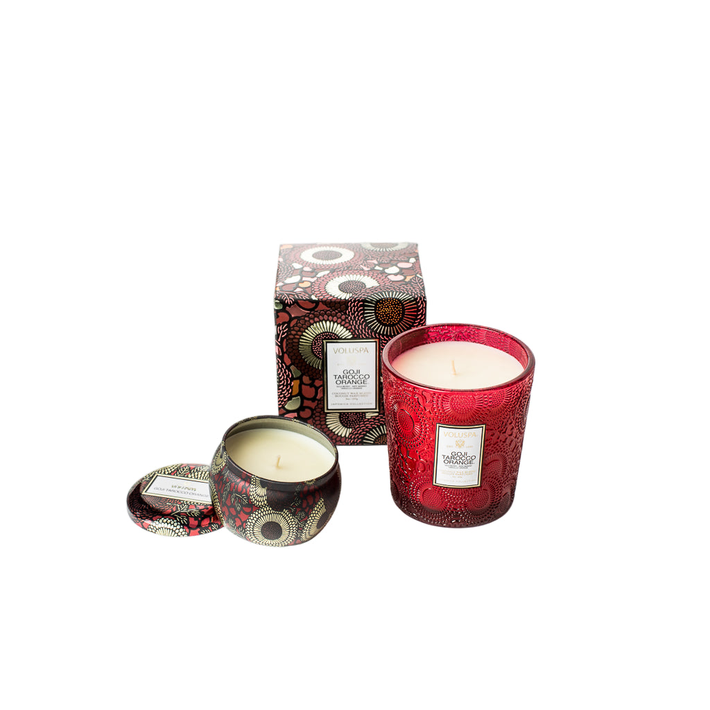 Voluspa's unique coconut wax blend is housed in a 6.5 oz. holiday inspired embossed glass with a tapered silhouette decorative gift box. The single wick allows you to enjoy fragrance throw for 40 hours. The candles are handcrafted in the United States and feature our proprietary, clean-burning coconut wax blend and natural wicks. Voluspa is free of phthalates, parabens and sulfates and are never tested on animals. Up-cycle this best seller into a keepsake after the last burn.