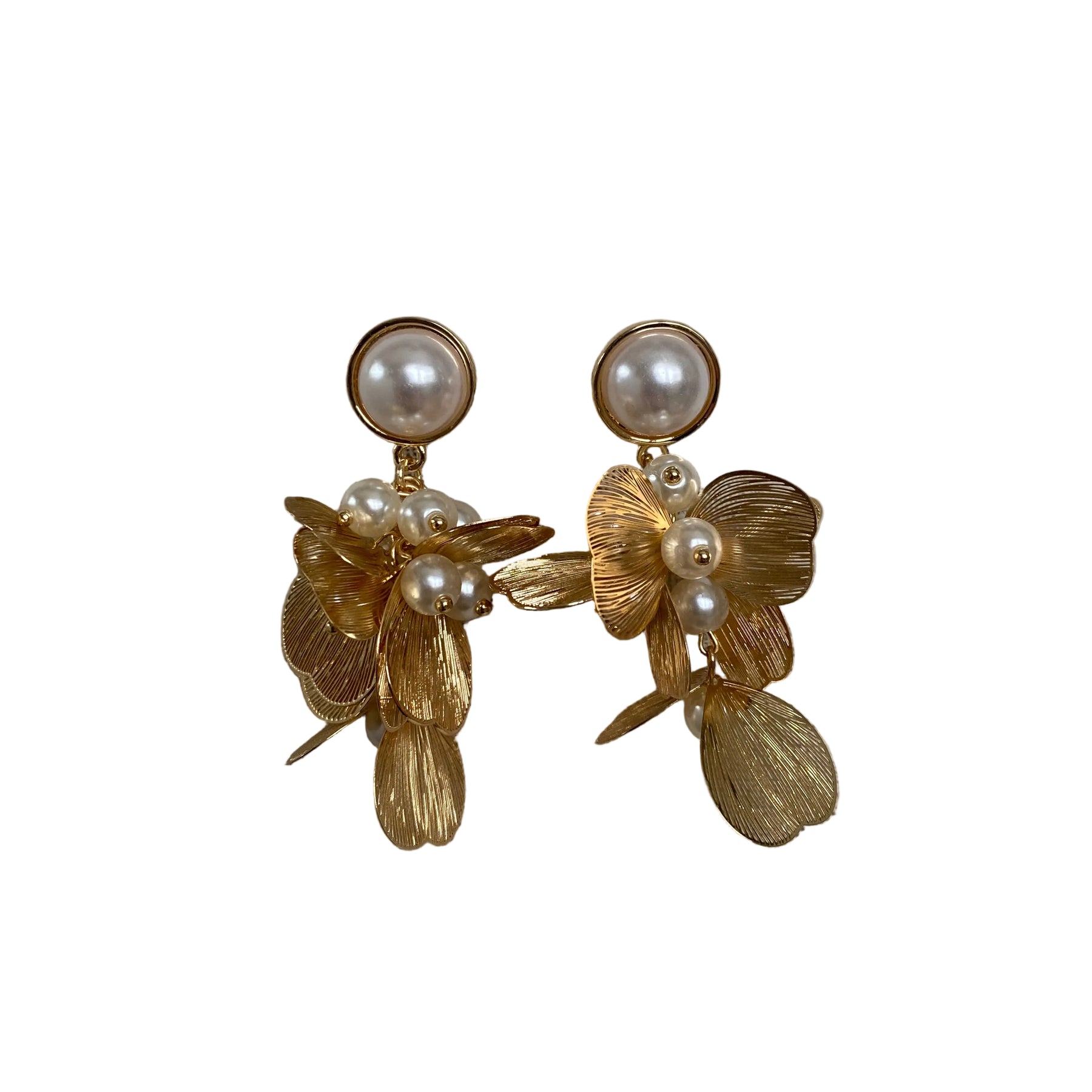 Regular price $20.50 Save $-20.50With a large pearl stud and dangling gold petals, these pearl and petal dangling earrings add a touch of feminine fun to your outfit.