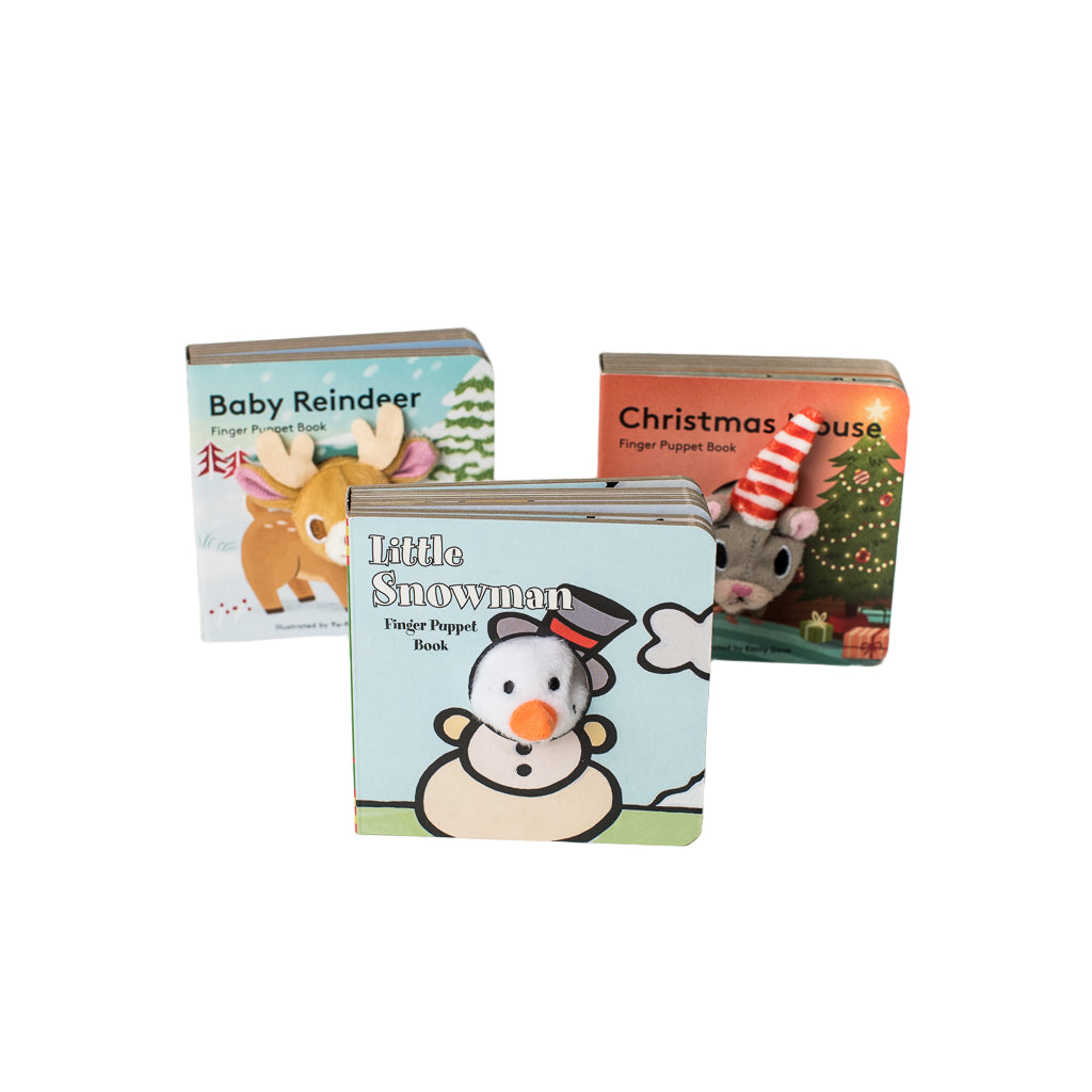 These finger puppet books are so fun for your and your little one! Available in 3 different animals: Snowman, Mouse, & Reindeer!