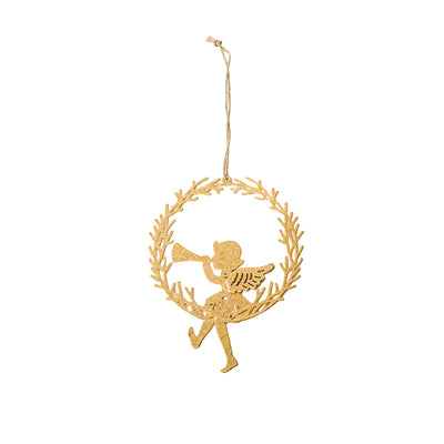 These sweet metal angel sitting on a wreath subtly glimmers in the tree.